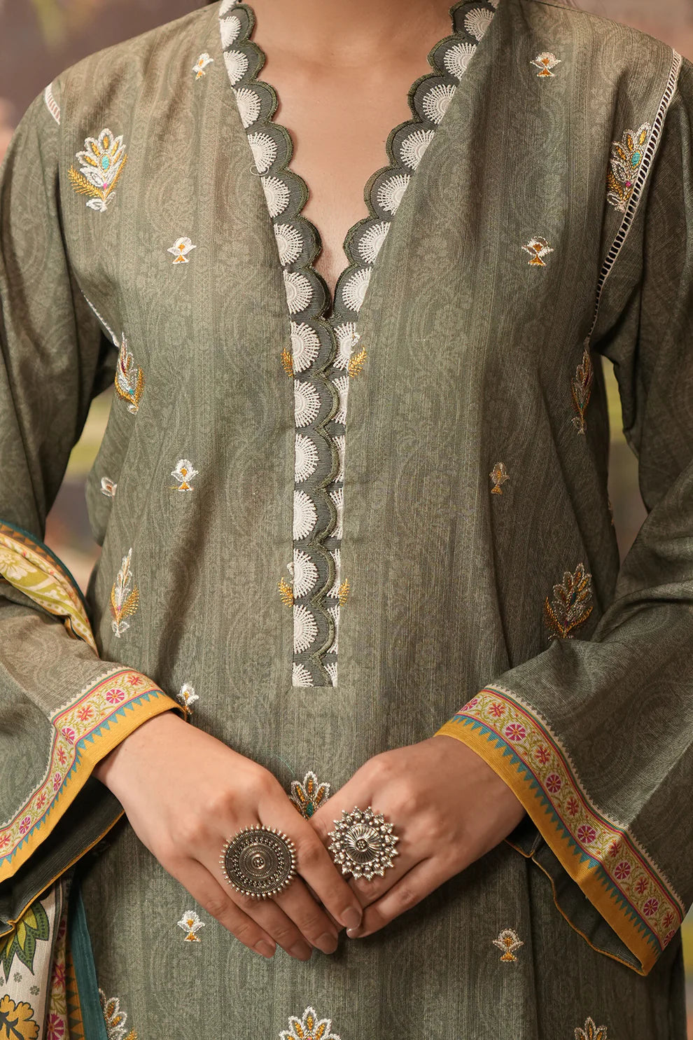 Fabric: Digital Printed Embroidered Textured Khaddar Shirt 3M